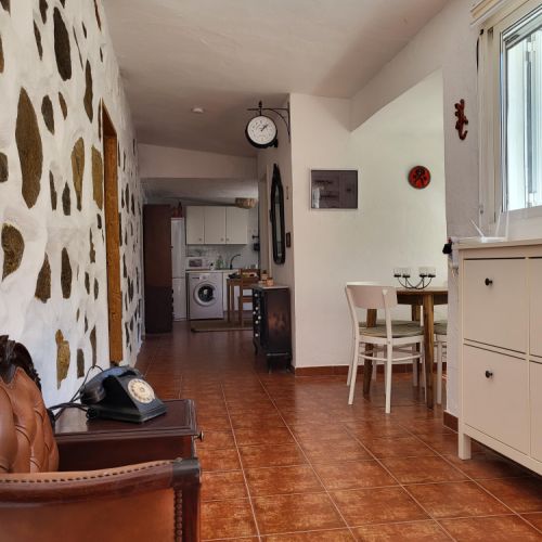 Dispone de todos los electrodomésticos y menaje necesarios: vitrocerámica, lavadora, frigorífico y congelador, microondas, cafetera de filtro, cafetera italiana, hervidora eléctrica, tostadora, exprimidor de naranja, mesa de madera y 4 sillas.